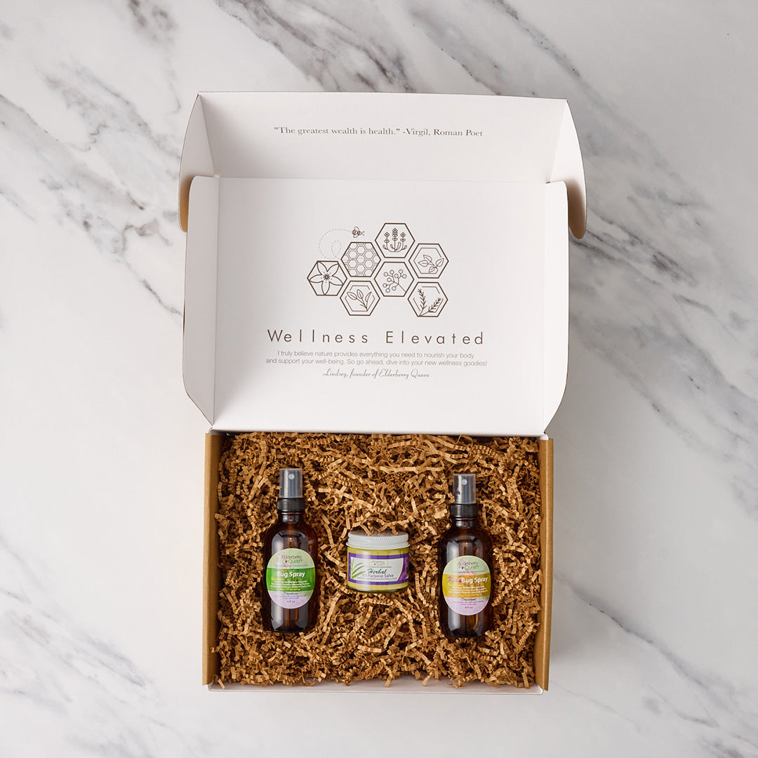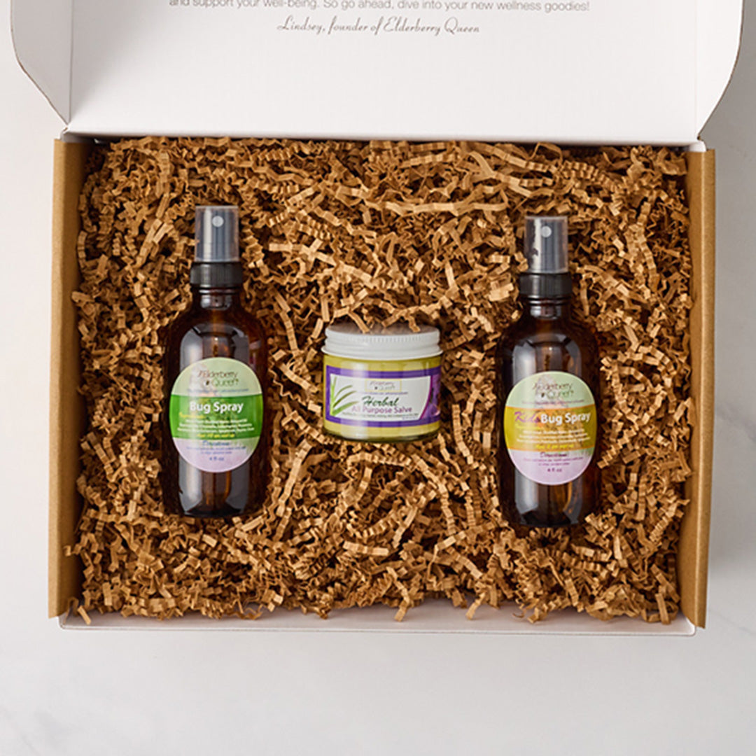 Keep pesky bugs at bay with our ‘Bug Off’ Gift Box. This essential set is your go-to solution for enjoying the great outdoors without the nuisance of bugs. Complete with natural bug spray for both adults and children, along with a soothing herbal healing salve for itchy bites, this package is a must-have for any outdoor adventure.