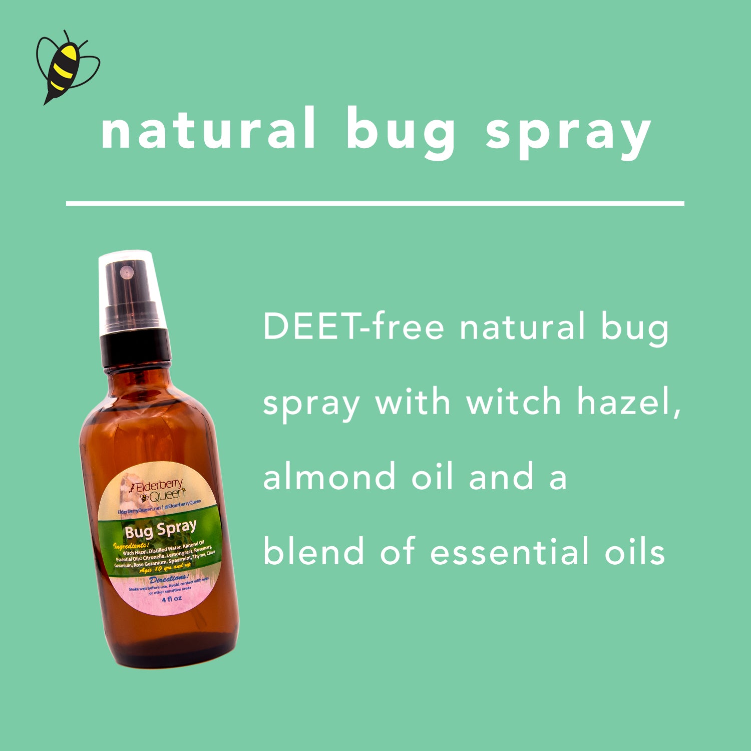 This is an all natural, DEET-free bug/tick repellent that smells wonderful.